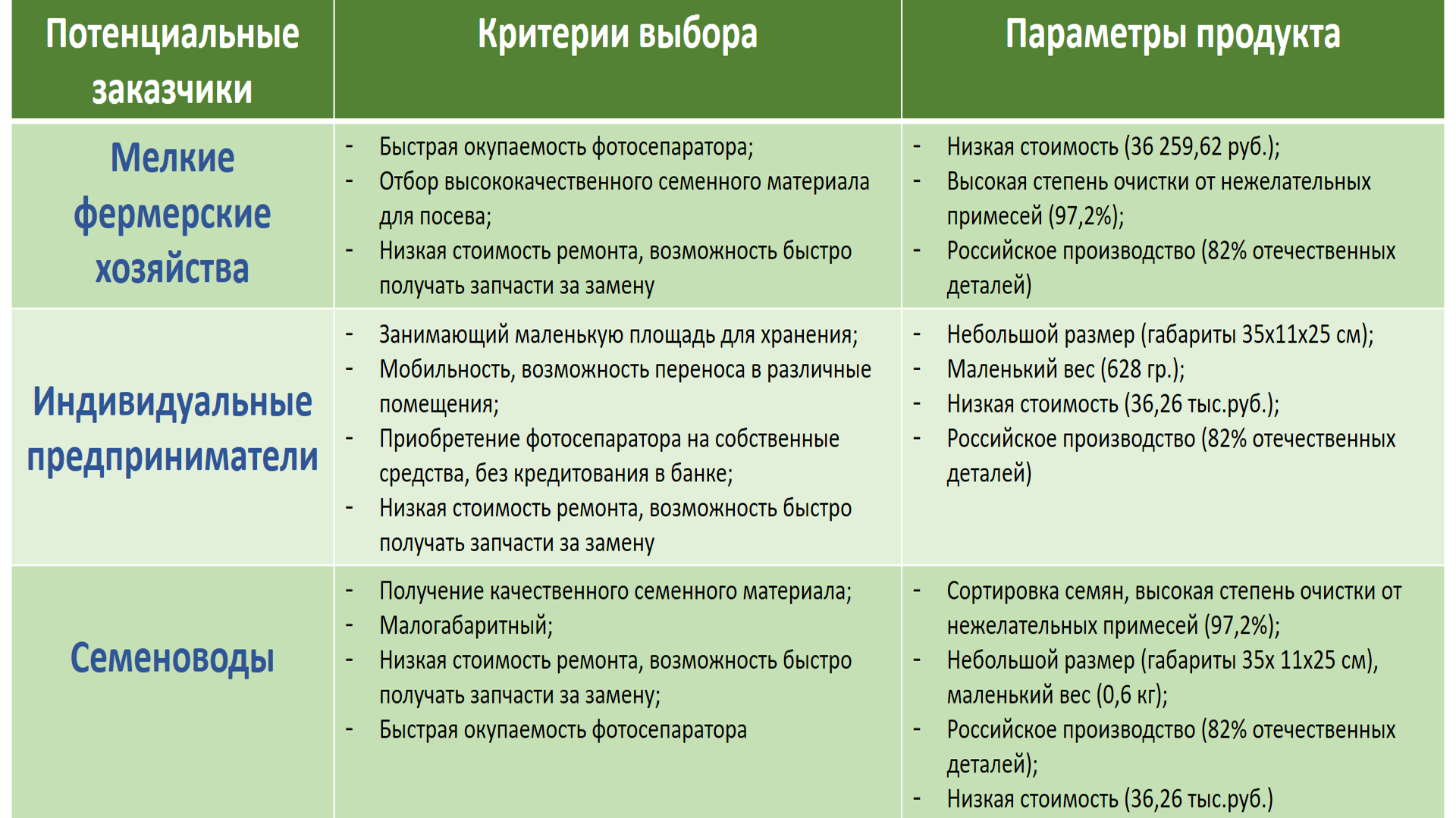Чтобы засеять эти площади, им необходимо отобрать качественный посевной материал. И здесь начинаются основные проблемы, связанные с наличием доступной агротехники. Имеющиеся на рынке фотосепараторы не доступны, а мелкогабаритные отечественного производства, которые мог бы себе позволить каждый желающий в России, отсутствуют. Поэтому на отбор посевного материала вручную людям приходится затрачивать много времени.